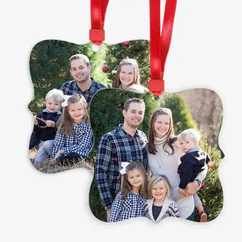 Display your favorite photo(s) on this double-sided metal ornament. Each ornament arrives ready to hang. Choose from multiple styles and design options.