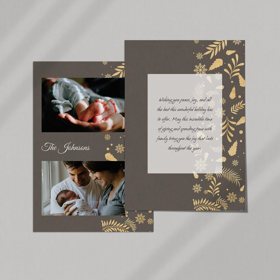 Send an extra sparkle of warm wishes to family and friends! Metallic cards are printed using real metallic inks. Choose from gold or silver and add your favorite holiday photo. Add more photos to the back or choose the letter-back layout and write your own personalized note.